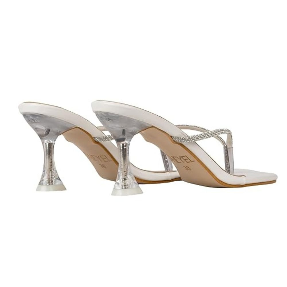 Elevate your style with these chic and elegant heel sandals for women. Crafted with premium materials, these sandals feature a sleek white design adorned with sparkling rhinestone embellishments along the straps. The towering stiletto heel adds a touch of glamour and elongates your silhouette, while the padded insole ensures lasting comfort. Whether you’re attending a formal event or a night out on the town, these sandals will make a statement and complement any ensemble. Slip them on and let your confidence shine through with every step.
